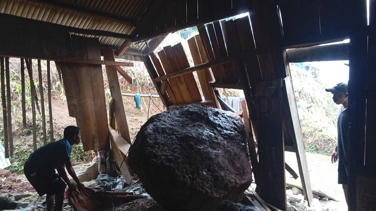Harianlabuanbajo-Batu berukuran besar menimpa rumah Donatus Ganal, Warga Dusun Wol, Desa Compang Kules Manggarai Barat, NTT pada Sabtu(27/12/2025) pukul 16.30 Wita.