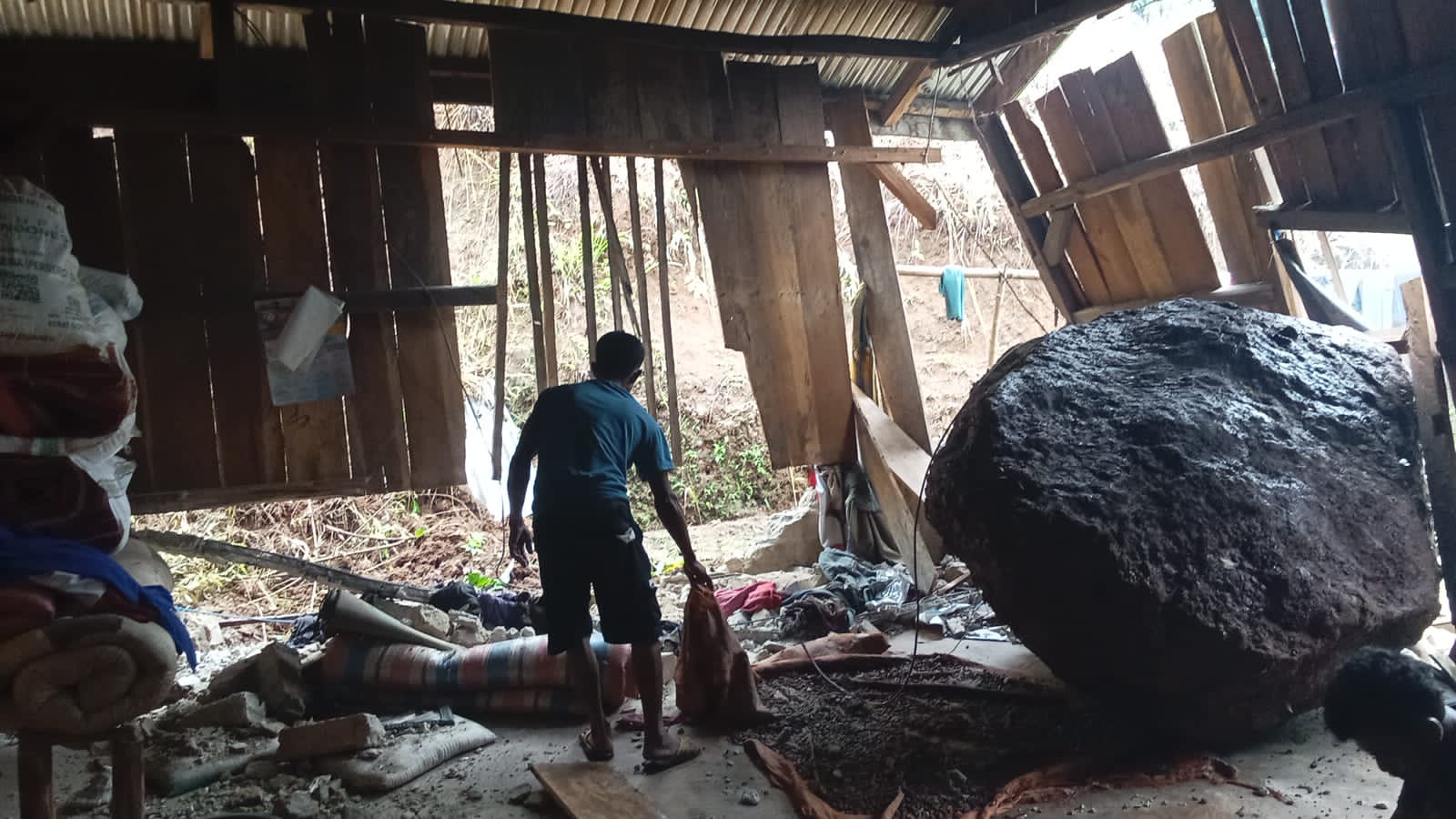 Pada kesempatan yang sama, batu berukuran besar menggelinding dan menimpa rumahnya. Beruntungnya, tidak ada korban jiwa dalam kejadian tersebut. Namun, kerugian materil diperkirakan mencapai Rp 50 juta.
