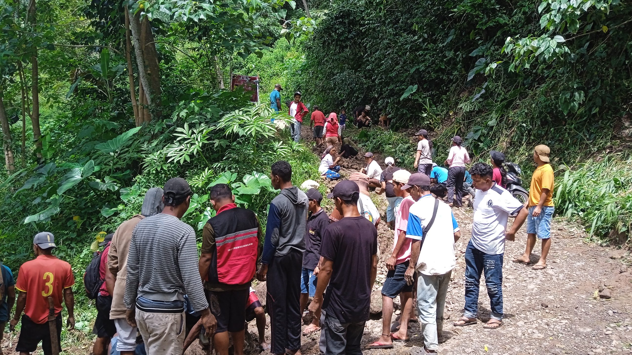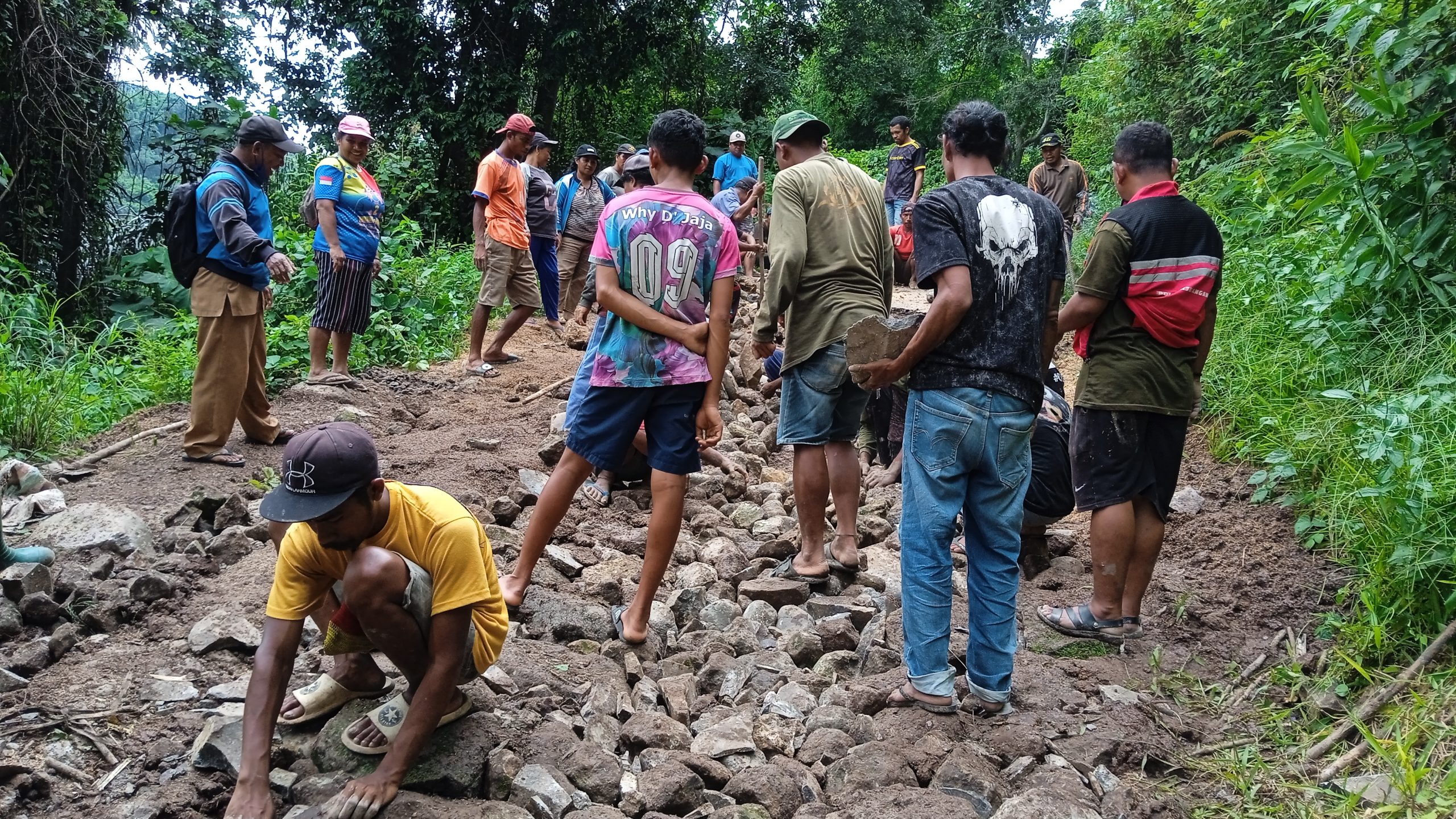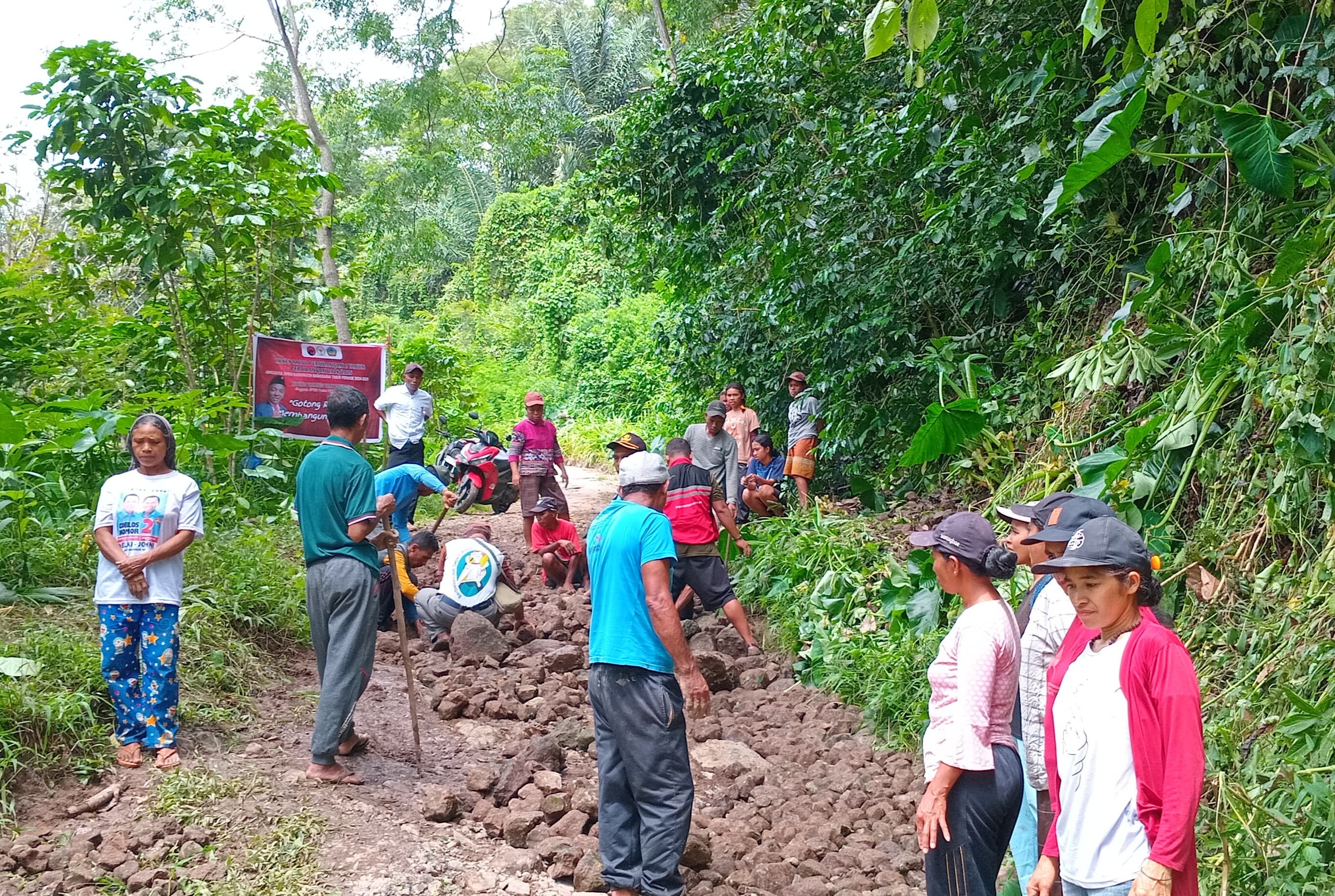 Anggota DPRD Manggarai Timur Fraksi PDI Perjuangan Paulus Yohanes Yorit Poni, S.Sos Bersama Masyarakat Gotong Royong Perbaikan Jalan Rusak.