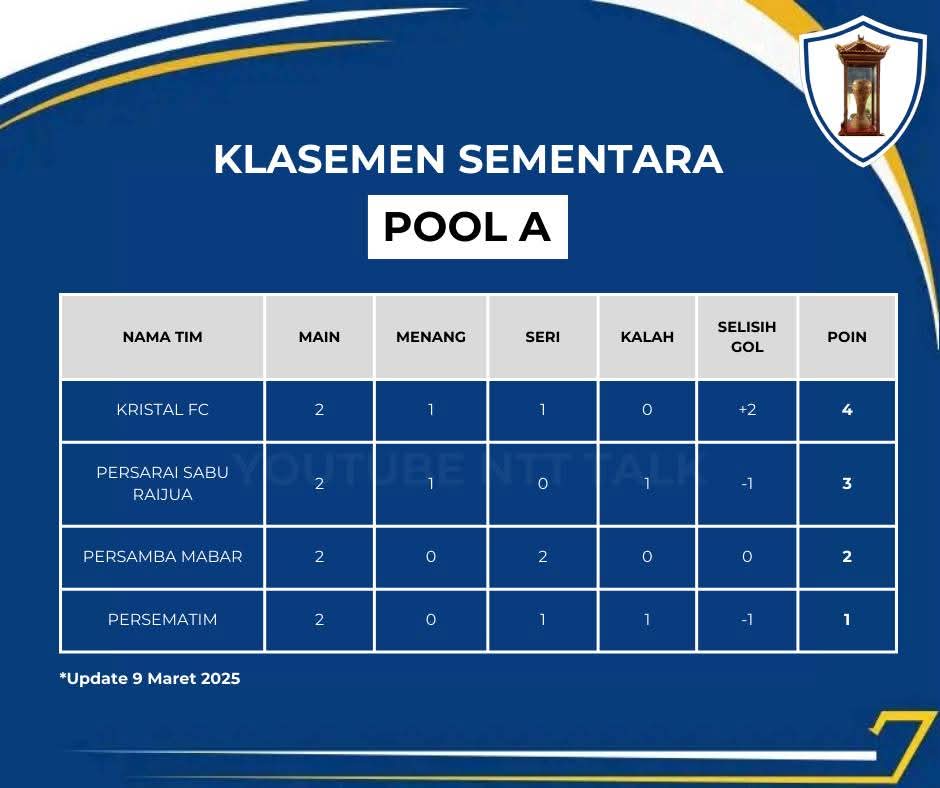 Berikut urutan Klasemen Pool A ETMC XXXIII 2025.